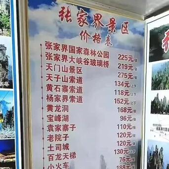 张家界景区是多个单独景点的统称,包含张家界国家森林公园(也称武陵源景区,门票225元)、天门山(275元)、大峡谷玻璃桥(219元)、黄龙洞(168元)、宝峰湖(96元)等多个分景区。