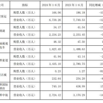 根据张家界公司的财务报表来看,景区运营的大多数项目,与2023年同期的同比增减都在-10-20%之间波动,可以说属于正常数据。唯有“大庸古城的购票人数”一项,同比增减达到了-81.89%。